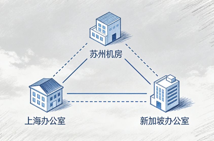 聊到跨地域办公网络连接,很多企业都会碰到头疼的问题。今天有个客户过来咨询组网,具体情况是国内办公地点在上海、机房在苏州,海外办公在新加坡,这样三个不同地区想要实现互联。今天我们就从多个角度来聊聊,如何设计和搭建一套靠谱的三地互联方案,避免踩...
